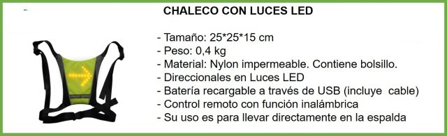 1. Descubre la Innovación con Nuestro Chaleco de Luz LED Visibilidad Inigualable Con nuestro chaleco LED, serás el centro de atención en la carretera Equipado con luces direccionales, función de stop movimiento y alerta este chaleco te hace visible a larga distancia, Ya sea que estés en movimiento o detenido, los conductores te verán claramente reduciendo el riesgo de accidentes y garantizando tu seguridad.